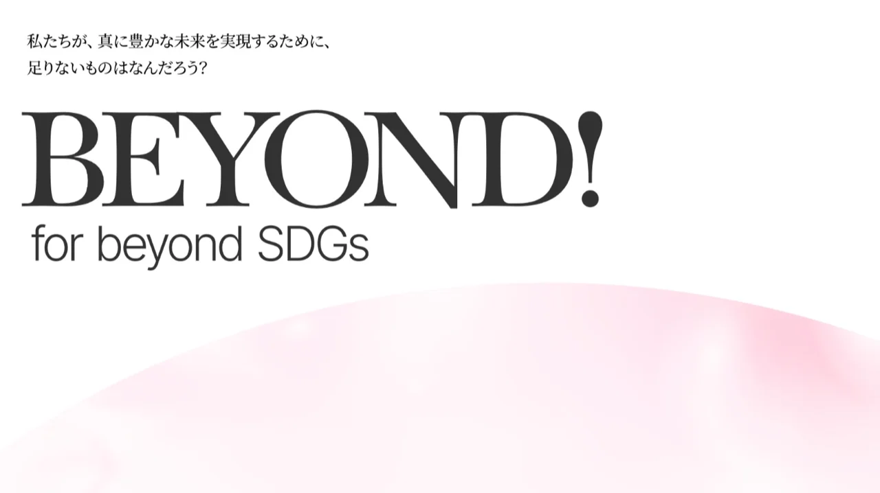 「BEYOND! for beyond SDGs」は、2030年以降の国際目標を見据え、日本からアジア、そして国連に向けてSDGs達成への実践に基づく提言の発信を目指す官民連携プラットフォーム「ビヨンドSDGs官民会議」のアクションスローガンです。